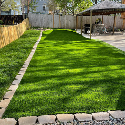 We also installed Missouri at the end of the property and got the left side of the yard ready to install the synthetic grass. We had to level out the terrain.